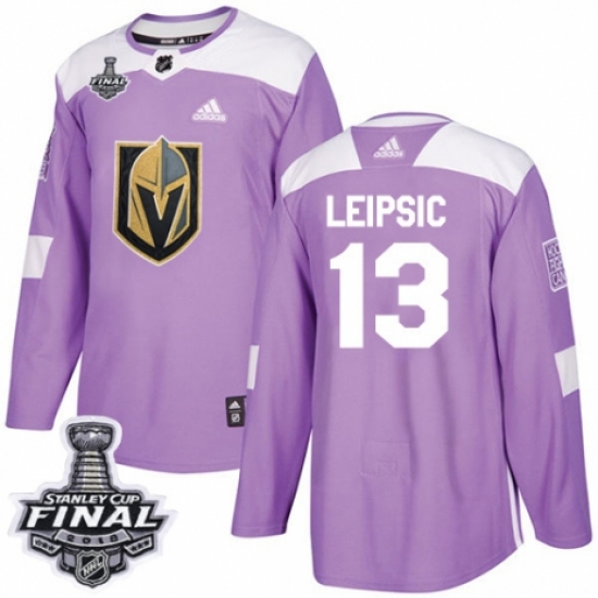 >Youth Adidas Vegas Golden Knights #13 Brendan Leipsic Authentic Purple Fights Cancer Practice 2018 Stanley Cup Final NHL Jersey