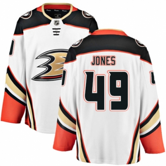 >Youth Anaheim Ducks #49 Max Jones Authentic White Away Fanatics Branded Breakaway NHL Jersey