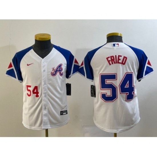 >Youth Atlanta Braves #54 Max Fried Number White 2023 City Connect Cool Base Stitched Jersey