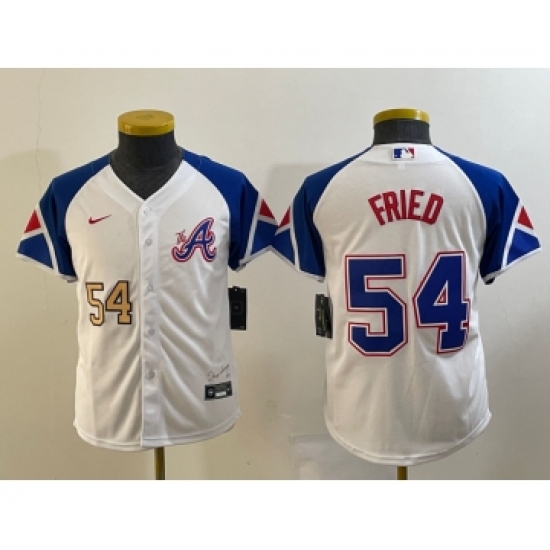 >Youth Atlanta Braves #54 Max Fried Number White 2023 City Connect Cool Base Stitched Jersey1
