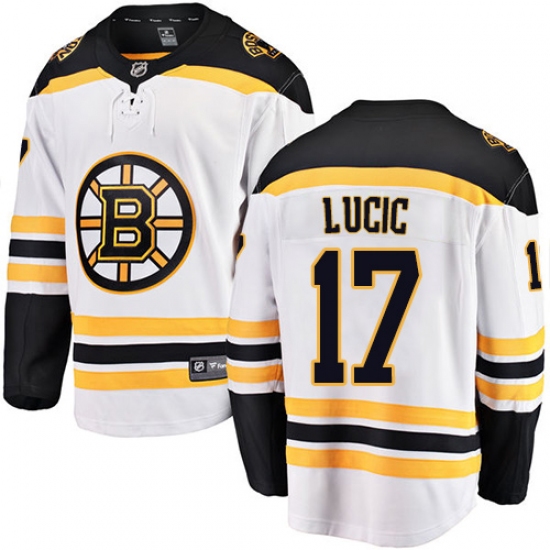 Youth Boston Bruins #17 Milan Lucic Authentic White Away Fanatics Branded Breakaway NHL Jersey