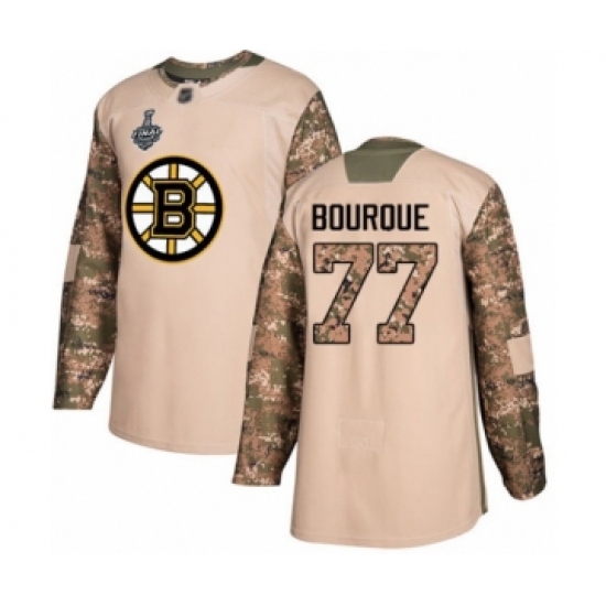 Men's Boston Bruins #77 Ray Bourque Authentic Camo Veterans Day Practice 2019 Stanley Cup Final Bound Hockey Jersey