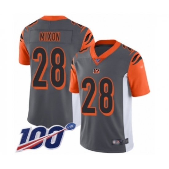 Men's Cincinnati Bengals #28 Joe Mixon Limited Silver Inverted Legend 100th Season Football Jersey