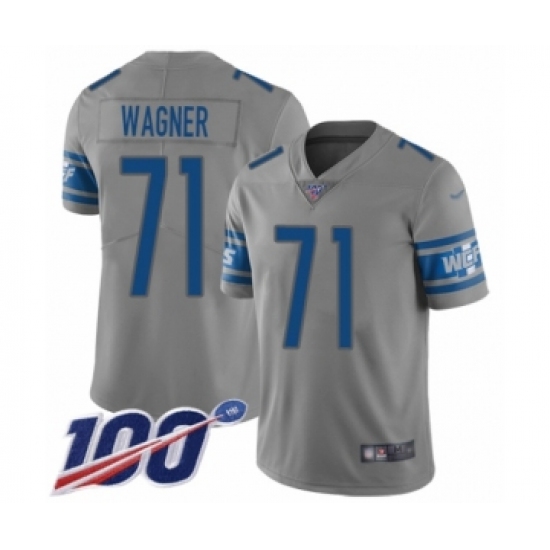 >Youth Detroit Lions #71 Ricky Wagner Limited Gray Inverted Legend 100th Season Football Jersey