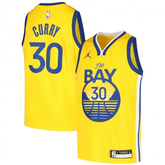 Youth Golden State Warriors #30 Stephen Curry Jordan Brand Gold 2020-21 Swingman Player Jersey