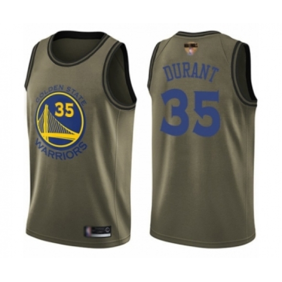 >Youth Golden State Warriors #35 Kevin Durant Swingman Green Salute to Service 2019 Basketball Finals Bound Basketball Jersey