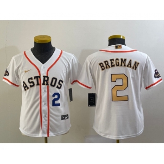 >Youth Houston Astros #2 Alex Bregman Number 2023 White Gold World Serise Champions Cool Base Stitched Jersey1