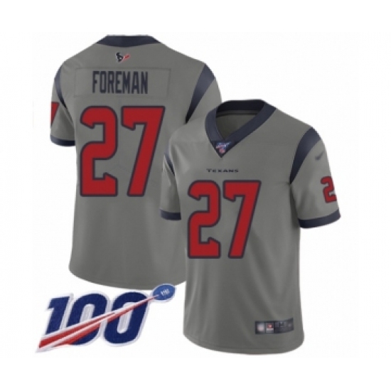 Youth Houston Texans #27 D'Onta Foreman Limited Gray Inverted Legend 100th Season Football Jersey