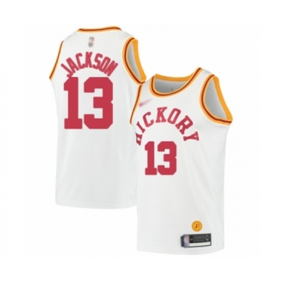 Men's Indiana Pacers #13 Mark Jackson Authentic White Hardwood Classics Basketball Jersey