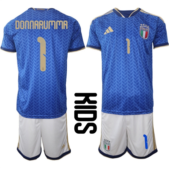 Youth Italy #1 DONNARUMMA National Team FIFA x World Cup 2026 Home Blue On Field Kids Jerseys