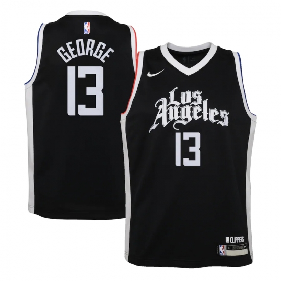 Youth LA Clippers #13 Paul George Nike Black 2020-21 Swingman Jersey