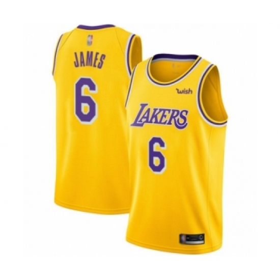 >Youth Los Angeles Lakers #6 LeBron James Swingman Gold Basketball Jersey - Icon Edition