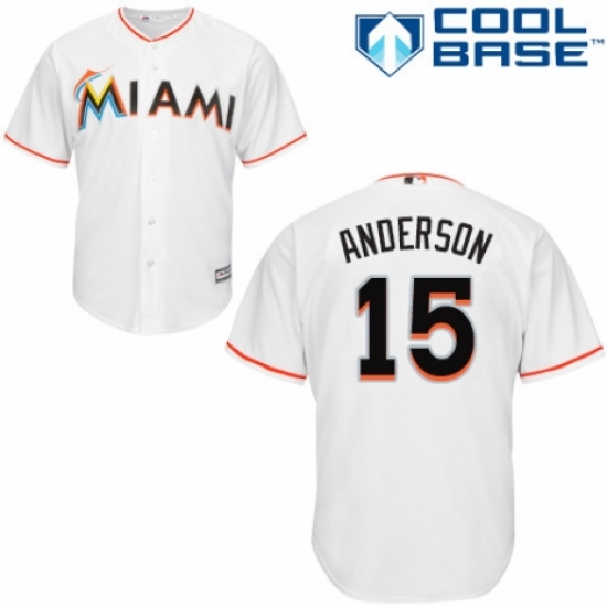 >Youth Majestic Miami Marlins #15 Brian Anderson Replica White Home Cool Base MLB Jersey