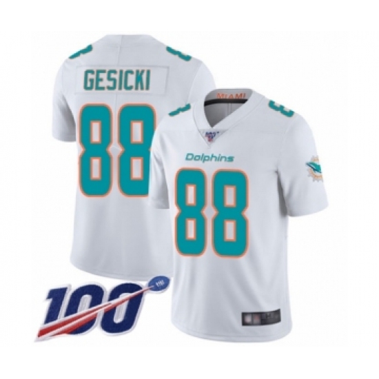 Youth Miami Dolphins #88 Mike Gesicki White Vapor Untouchable Limited Player 100th Season Football Jersey