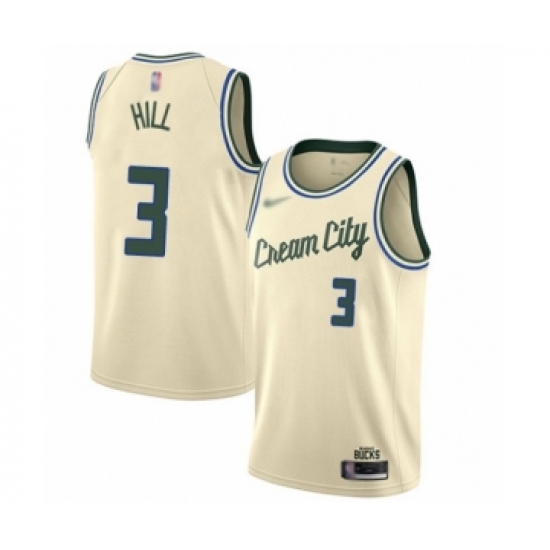 Men's Milwaukee Bucks #3 George Hill Swingman Cream Basketball Jersey - 2019 20 City Edition