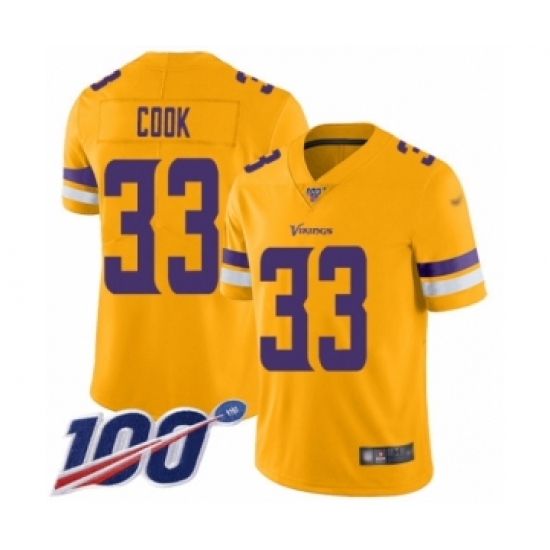 >Youth Minnesota Vikings #33 Dalvin Cook Limited Gold Inverted Legend 100th Season Football Jersey