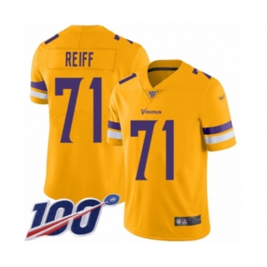 >Youth Minnesota Vikings #71 Riley Reiff Limited Gold Inverted Legend 100th Season Football Jersey