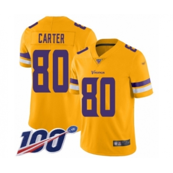 >Youth Minnesota Vikings #80 Cris Carter Limited Gold Inverted Legend 100th Season Football Jersey