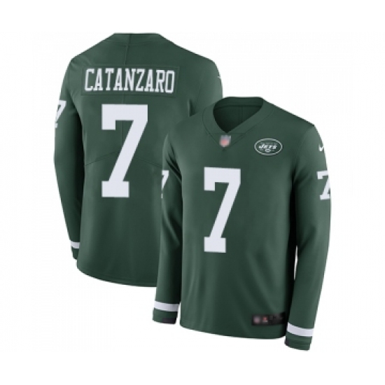 >Youth New York Jets #7 Chandler Catanzaro Limited Green Therma Long Sleeve Football Jersey