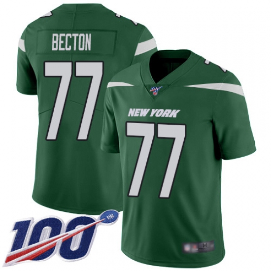 Men's New York Jets #77 Mekhi Becton Green Team Color Stitched 100th Season Vapor Untouchable Limited Jersey