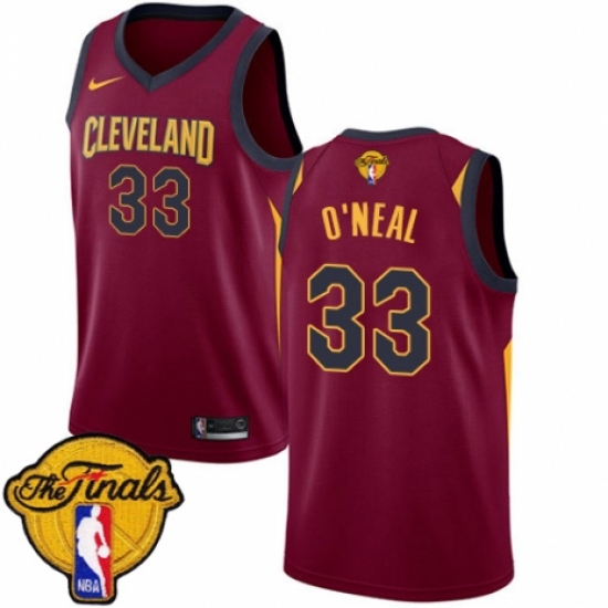 Men's Nike Cleveland Cavaliers #33 Shaquille O'Neal Authentic Maroon 2018 NBA Finals Bound NBA Jersey - Icon Edition