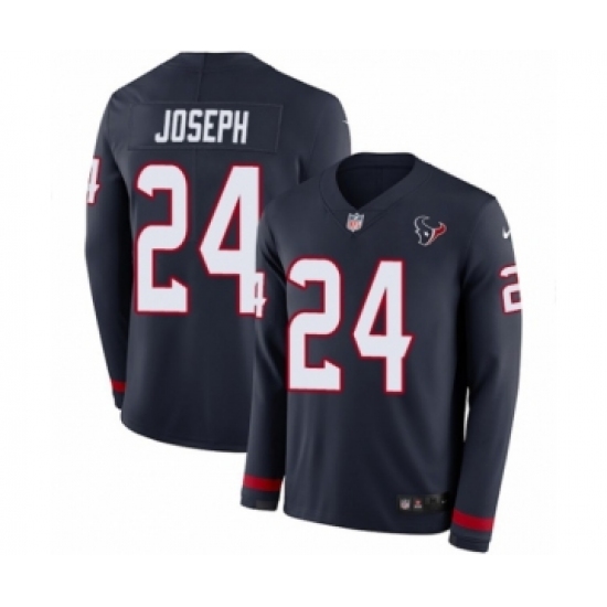 >Youth Nike Houston Texans #24 Johnathan Joseph Limited Navy Blue Therma Long Sleeve NFL Jersey