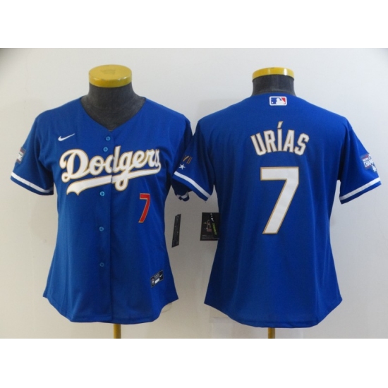 Women's Los Angeles Dodgers #7 Julio Urias Blue 2020 World Series Cool Base Nike Jersey4