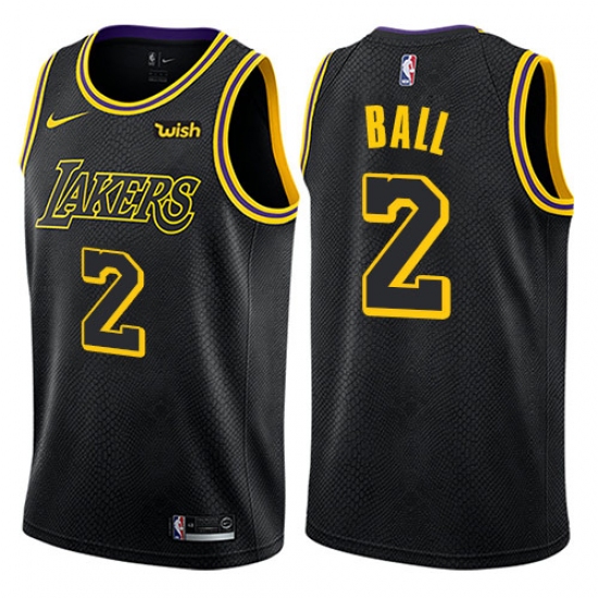 >Youth Nike Los Angeles Lakers #2 Lonzo Ball Swingman Black NBA Jersey - City Edition