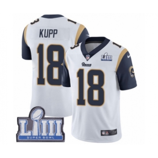 >Youth Nike Los Angeles Rams #18 Cooper Kupp White Vapor Untouchable Limited Player Super Bowl LIII Bound NFL Jersey