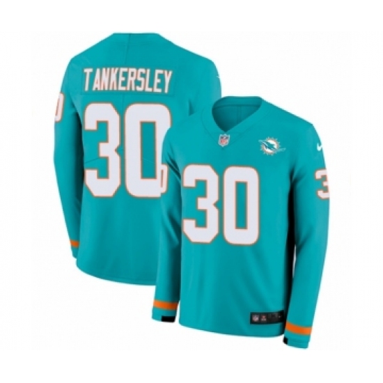 >Youth Nike Miami Dolphins #30 Cordrea Tankersley Limited Aqua Therma Long Sleeve NFL Jersey