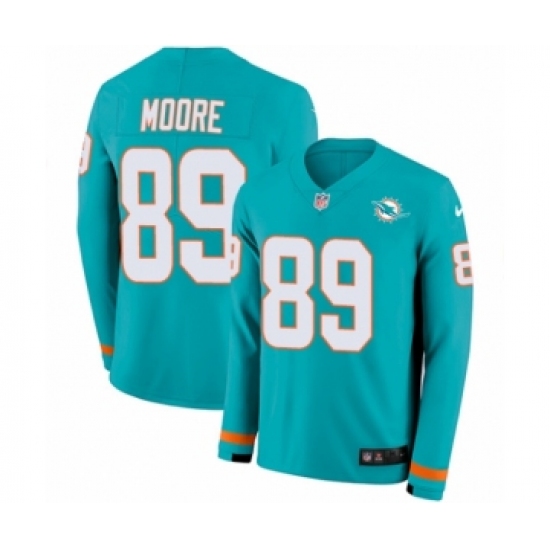Youth Nike Miami Dolphins #89 Nat Moore Limited Aqua Therma Long Sleeve NFL Jersey