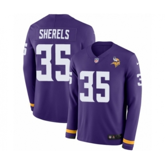 >Youth Nike Minnesota Vikings #35 Marcus Sherels Limited Purple Therma Long Sleeve NFL Jersey
