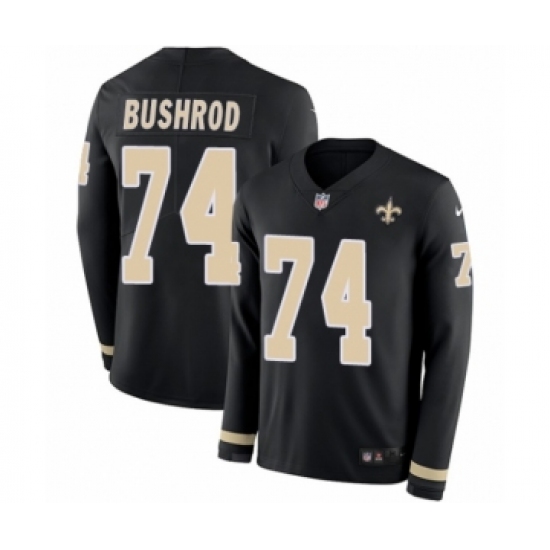 >Youth Nike New Orleans Saints #74 Jermon Bushrod Limited Black Therma Long Sleeve NFL Jersey
