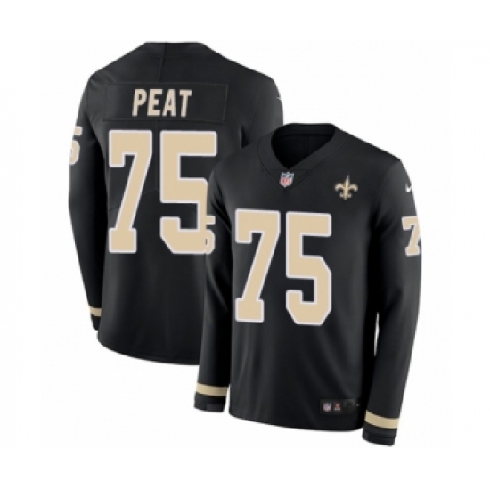 Men's Nike New Orleans Saints #75 Andrus Peat Limited Black Therma Long Sleeve NFL Jersey