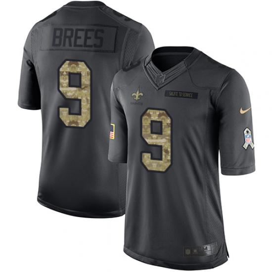 Home>NFL>New Orleans Saints>Drew Brees>Youth Nike New Orleans Saints #9 Drew Brees Limited Black 2016 Salute to Service NFL Jersey