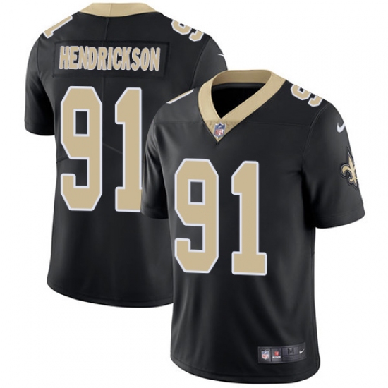 Home>NFL>New Orleans Saints>Trey Hendrickson>Youth Nike New Orleans Saints #91 Trey Hendrickson Black Team Color Vapor Untouchable Limited Player NFL Jersey