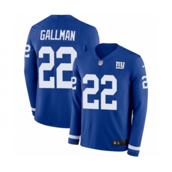 >Youth Nike New York Giants #22 Wayne Gallman Limited Royal Blue Therma Long Sleeve NFL Jersey