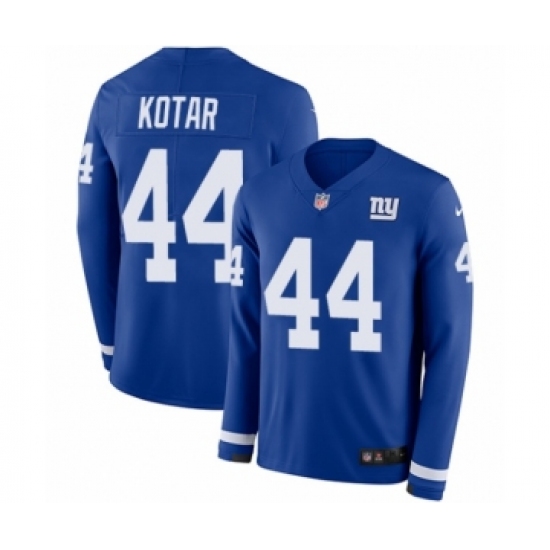 >Youth Nike New York Giants #44 Doug Kotar Limited Royal Blue Therma Long Sleeve NFL Jersey