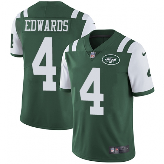 Home>NFL>New York Jets>Lac Edwards>Youth Nike New York Jets #4 Lac Edwards Green Team Color Vapor Untouchable Limited Player NFL Jersey