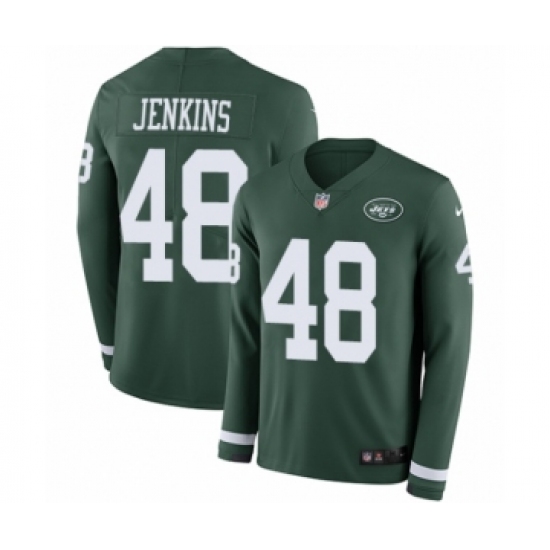 >Youth Nike New York Jets #48 Jordan Jenkins Limited Green Therma Long Sleeve NFL Jersey