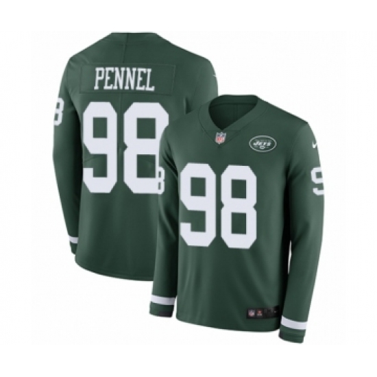 Men's Nike New York Jets #98 Mike Pennel Limited Green Therma Long Sleeve NFL Jersey