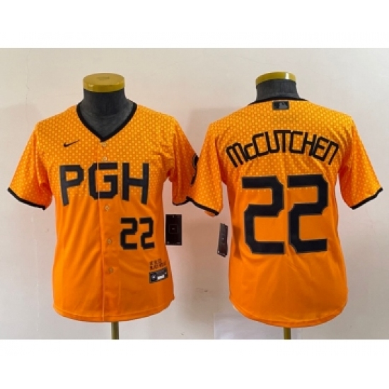 Youth Nike Pittsburgh Pirates #22 Andrew McCutchen Yellow 2023 City Connect Stitched Jersey