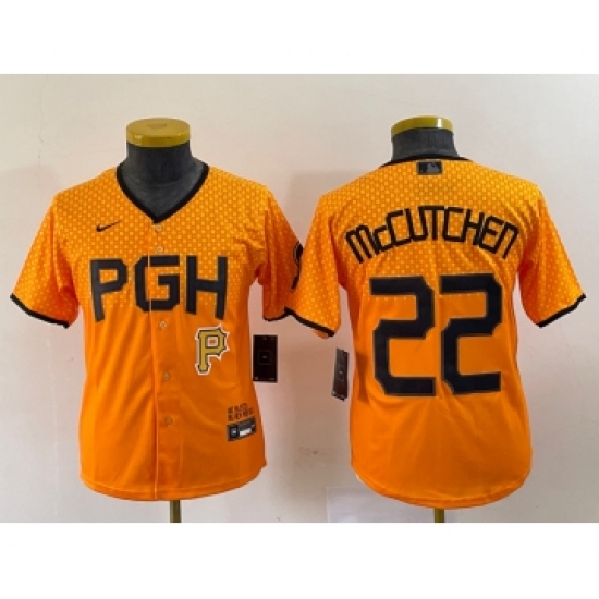 Youth Nike Pittsburgh Pirates #22 Andrew McCutchen Yellow 2023 City Connect Stitched Jersey