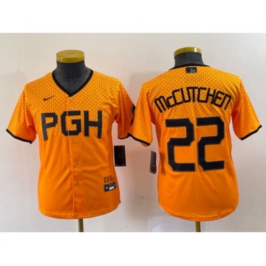 Youth Nike Pittsburgh Pirates #22 Andrew McCutchen Yellow 2023 City Connect Stitched Jersey1