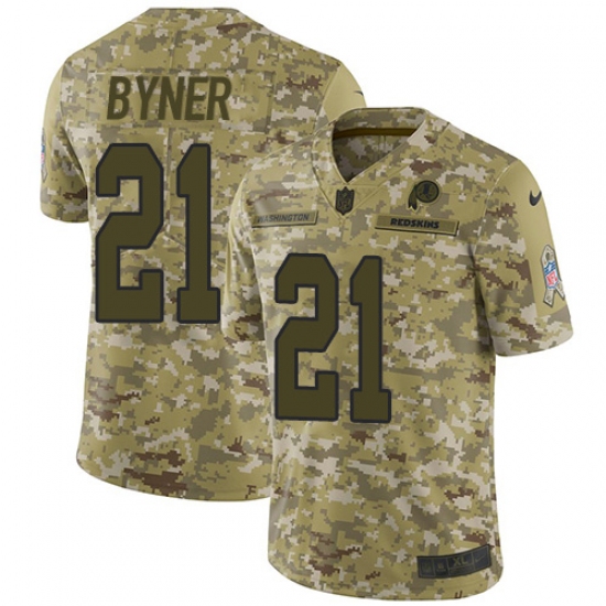 >Youth Nike Washington Redskins #21 Earnest Byner Limited Camo 2018 Salute to Service NFL Jersey