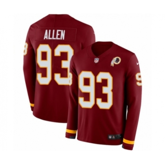 Youth Nike Washington Redskins #93 Jonathan Allen Limited Burgundy Therma Long Sleeve NFL Jersey