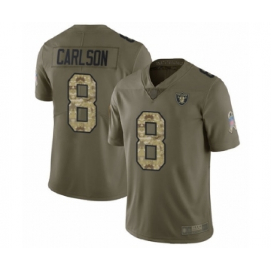>Youth Oakland Raiders #8 Daniel Carlson Limited Olive Camo 2017 Salute to Service Football Jersey