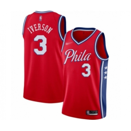 >Youth Philadelphia 76ers #3 Allen Iverson Swingman Red Finished Basketball Jersey - Statement Edition