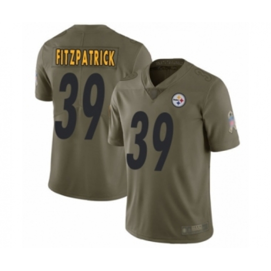 >Youth Pittsburgh Steelers #39 Minkah Fitzpatrick Limited Olive 2017 Salute to Service Football Jersey