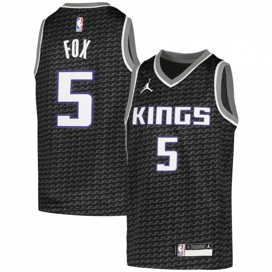 >Youth Sacramento Kings #5 De'Aaron Fox Jordan Brand Black 2020-21 Swingman Player Jersey